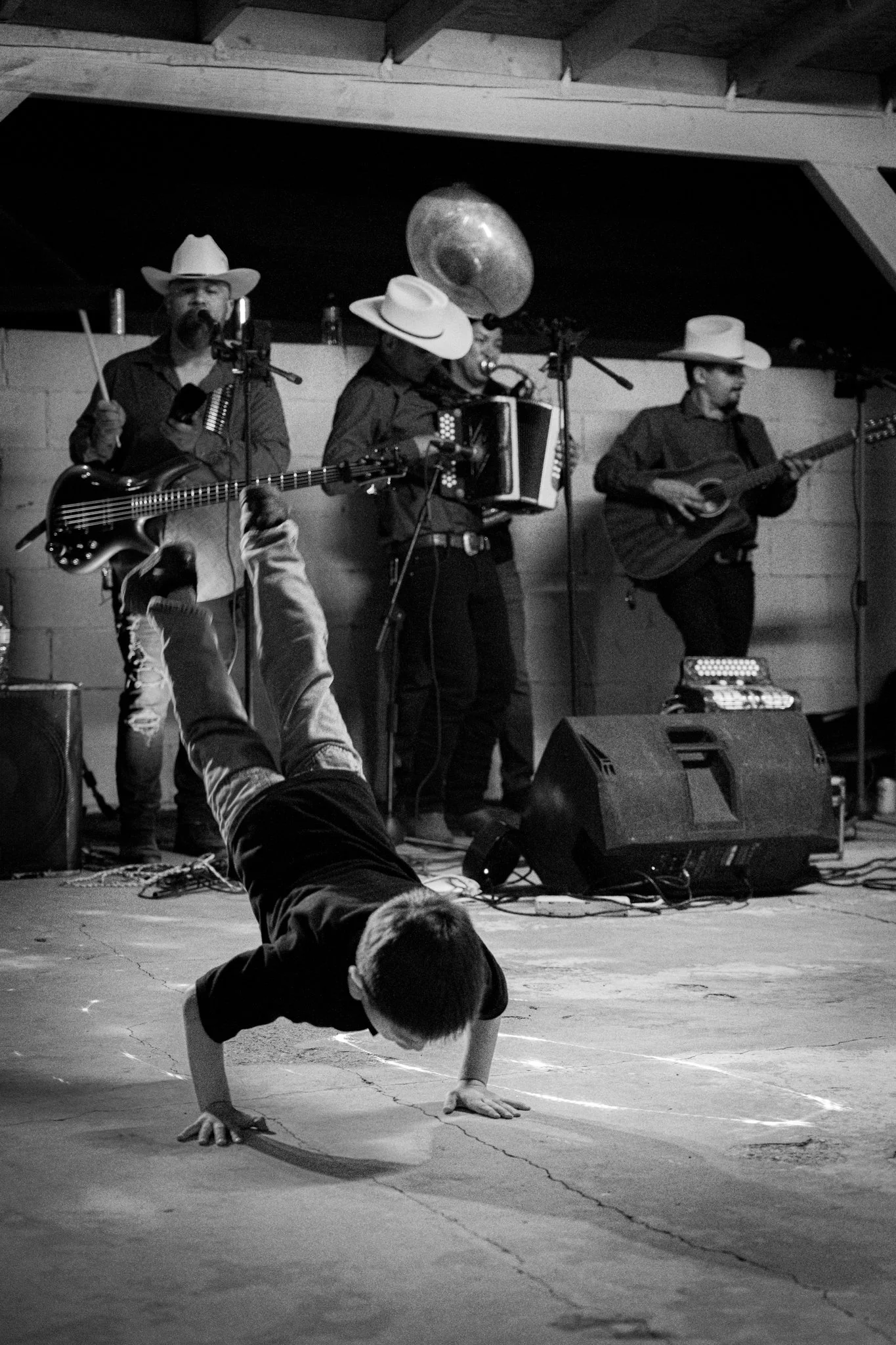 This photo I anticipated happening. Saw the kid doing his hand stand into “The worm” and tried to position myself so I could get him doing this with the band in the background.